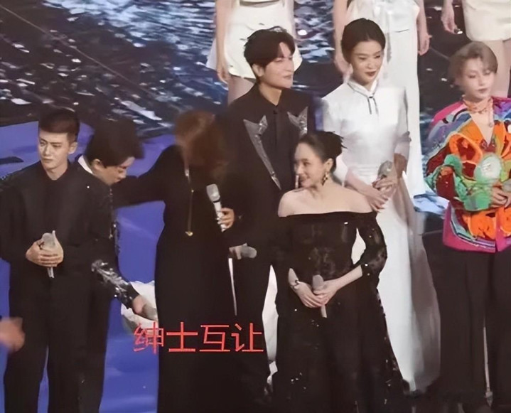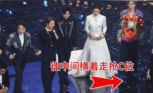 但不出意外的话,应该是出意外了,刘惜君从一开始就站到了周柏豪的左前方,等周柏豪要按照彩排站位走到刘惜君左边的时候,刘惜君又是一个横跨的操作,再度走到了周柏豪的左边挡住了他。