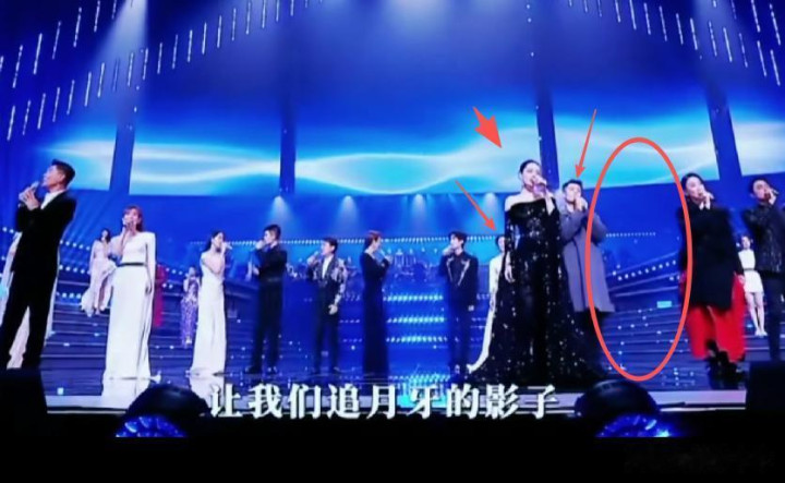 当天晚会开场就是群星合唱,人数众多,但像任嘉伦、王祖蓝、孙悦、陈楚生等人从彩排开始就被设定在中心位置,其他艺人呈“几”字型站位,既能凸显C位,又能让所有人都在镜头里。