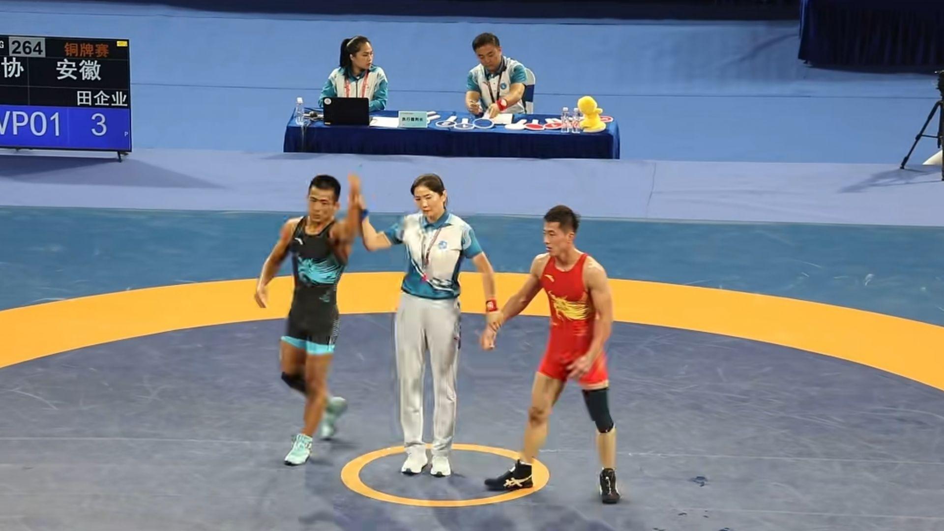 大皖新闻讯 十五届全运会如火如荼,在清远的赛场,继昨日老将王娟站在女子自由式摔跤76公斤级比赛中不抛弃不放弃,经过复活赛力拼一枚铜牌;12日下午,另一位安徽老将田企业,在男子古典式67kg比赛中向奖牌发起冲击。经过数轮鏖战,虽然遗憾未能杀入决赛,但这位34岁的老将为安徽代表团再入一块铜牌。