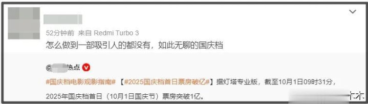 ——无大爆、无逆转、无惊喜,甚至连两极分化都没有,还真是应了网友的话,2025年国庆档电影好无聊!