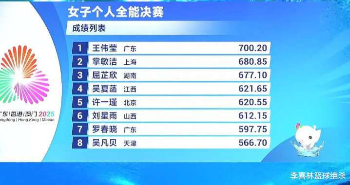 掌敏洁在跳台项目的第四跳出现失误,只拿到50.75分,4跳完成后导致她落后33.40分。虽然在后续的轮次,她拼命追赶,但最终还是落后19.35分,总分680.85分屈居亚军。湖南选手屈芷欣以677.10分获得季军。